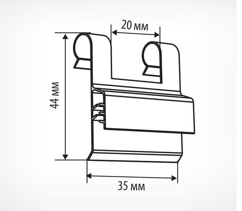 Для подвешивания табличек толщиной до 3 мм на Т-образный крючок, металлический прут или сетчатый стенд, корзину, диаметром до 10 мм. Ширина держателя - 35 мм.