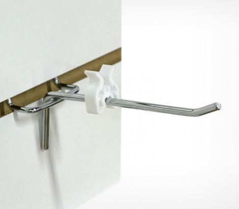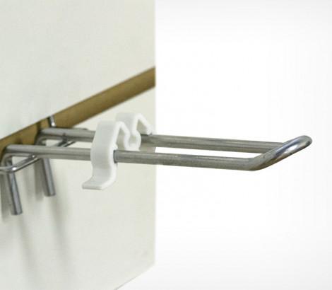 Ограничитель товара предназначен для фиксации товара на крючках при транспортировке дисплея, а также для ограничения рабочей длины крючка. Подходит для двойных и одинарных крючков. Стандартный цвет - белый.