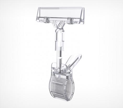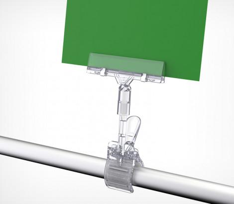 Крепится на торец полки, корзину толщиной до 35 мм. При креплении на трубу - максимальный Ø трубы - 39 мм. Толщина ценника или таблички - до 6 мм.
