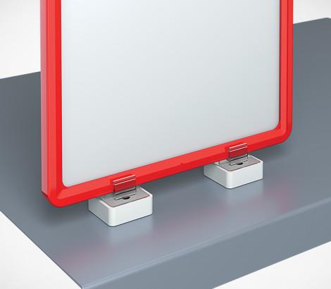 Квадратный магнитный держатель рамки под углом 90° к поверхности и паралельно поверхности, позволяет крепить пластиковые рамки различных форматов на любых металлических поверхностях. Рекомендуется использовать по 2 магнитных держателя