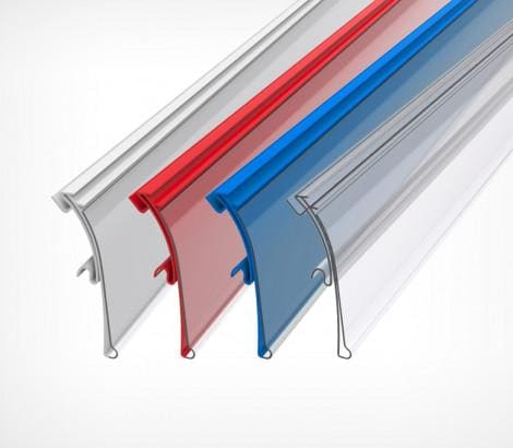 Устанавливается на полки с С-образным профилем на торце: KIFATO, LA FORTEZZA, ALSER и подобных. Гибкое крепление обеспечивает откидывание ценника вверх.