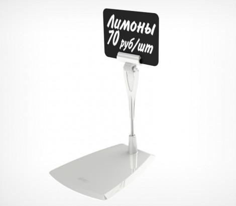 Особенности: широкая устойчивая подставка помещается под товар или гастроёмкость, препятствуя опрокидыванию конструкции; одинаковая длина ножки помогает сделать выкладку зрительно гармоничнее и привлекательнее; угол наклона ценника меняется, можно подобрать оптимальный в зависимости от расположения товара.