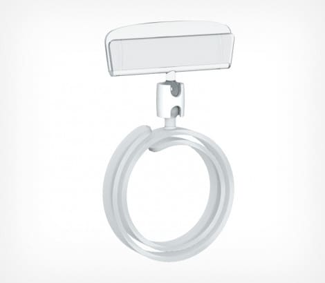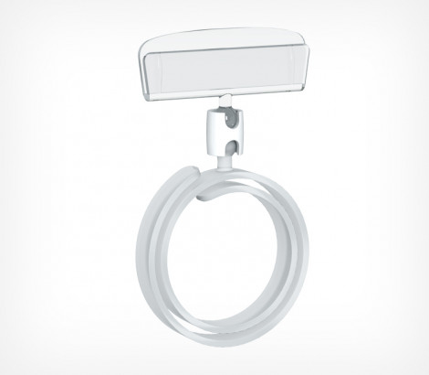 ДЕРЖАТЕЛЬ ЦЕННИКА СПИРАЛЬНЫЙ, НА ПРОДУКТЫ ЦИЛИНДРИЧЕСКОЙ ФОРМЫ.  ДИАМЕТР ЗАХВАТА ОТ 30 ДО 120 ММ. УГОЛ НАКЛОНА ЦЕННИКА РЕГУЛИРУЕТСЯ С ПОМОЩЬЮ ШАРНИРОВ.