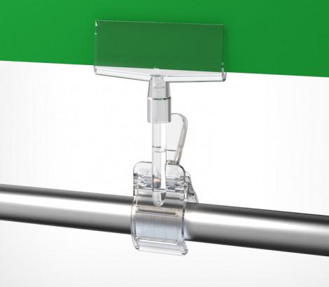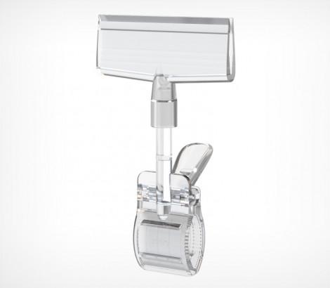 Держатель рекламного плаката из картона, заламинированной бумаги или пластика с зажимом-прищепкой для крепления на трубе (макс Ø 40 мм), товаре, краю полки (макс.толщина 35 мм). Толщина вставки – от 0,2 до 3,0 мм. Размеры держателя – 90 мм (ширина) х 38 мм (высота)