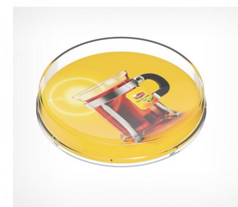 Круглая монетница RONDA — раскладная конструкция из основания и крышки, которые легко совмещаются и закрываются на защёлкивающийся замок. Некоторые характеристики: материал — пластик размер — 172×24 мм диаметр рекламного поля — 166 мм цвет — прозрачный 4 прорезиненные ножки для установки на любой поверхности используется для организации расчёта с покупателями и в качестве рекламоносителя. Производитель: Россия.
