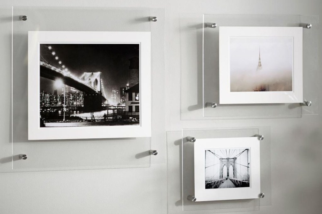 Панель настенная для постера из двух слоев оргстекла, крепится непосредственно к поверхности, на специальных дистанционных держателях.  Информация располагается между двумя слоями.