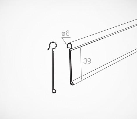 Ценникодержатель DRA применяется на корзинах из металлических прутьев. Защёлкивается на краю проволочной корзины, создавая прочное крепление. тип полок: проволочное оборудование с толщиной проволоки до 6 мм; высота ценника:39 мм