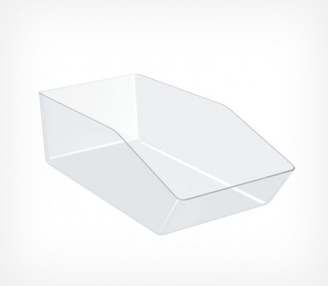 Универсальный малый накопитель для выкладки сыпучих или мелких товаров – оптимальное решение для магазинов формата супермаркет с продажей весовых продуктов, аптек и косметических магазинов в формате самообслуживания и других магазинов, сталкивающихся с выкладкой мелких товаров. Легкая очистка благодаря закругленным углам.